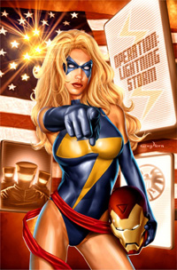 the name “Ms. Marvel” and hooking up with a post-Civil War SHIELD, in her solo